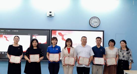 活动第四项,颁奖仪式。公共体育党支部获得最佳魅力奖,数学党支部获得最佳朗诵奖,图学与信息党支部获得最佳人气奖,公共外语第二党支部获得最佳团队奖,物理党支部获得最佳表现奖,公共外语第一党支部获得最佳创意奖,办公室党支部获得最佳风采奖。校党史学习教育巡回指导组组长、机关党委书记雷晓青为各个党支部颁奖。