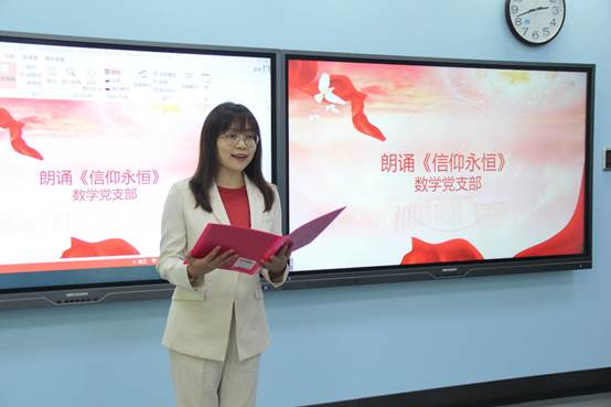 第二个节目,由数学党支部带来朗诵《信仰永恒》。教师代表精神饱满,声音洪亮,热情讴歌中国共产党。