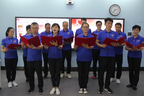 活动第一项,奏唱国歌。全体起立,齐声高唱。