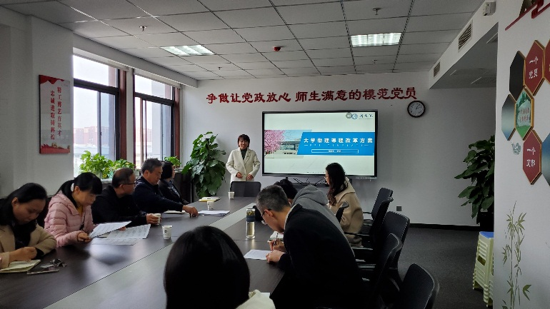 王党社主任根据课程改革方案,遵循理论+实践+应用的改革思路,按照大学物理课程及大学物理实验课程改革目标,对方案的落实和实施进行了规划,并安排了第一阶段的具体工作。