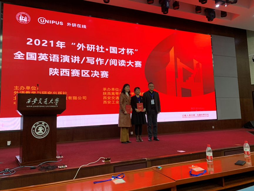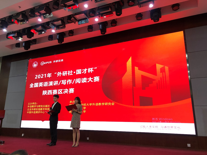承办的2021年“外研社·国才杯”全国英语演讲、阅读、写作大赛(陕西赛区复赛和决赛)顺利开展。来自陕西省52所高校的358名学生代表经过层层选拔进入复赛和决赛。因受疫情影响,所有参赛学生齐聚“云上”,通过线上平台线下参与相结合的形式开展了一场紧张又有趣的“隔空”较量。