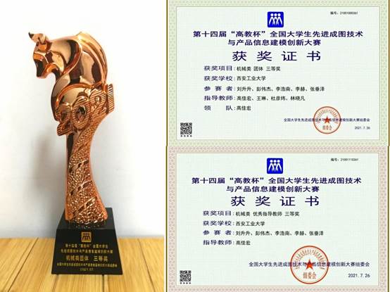 ① 在第十四届“高教杯”全国大学生先进成图技术与产品信息建模创新大赛中,我校首次获得“机械类团体”全国三等奖1项,获得“机械类个人全能”全国三等奖3项。