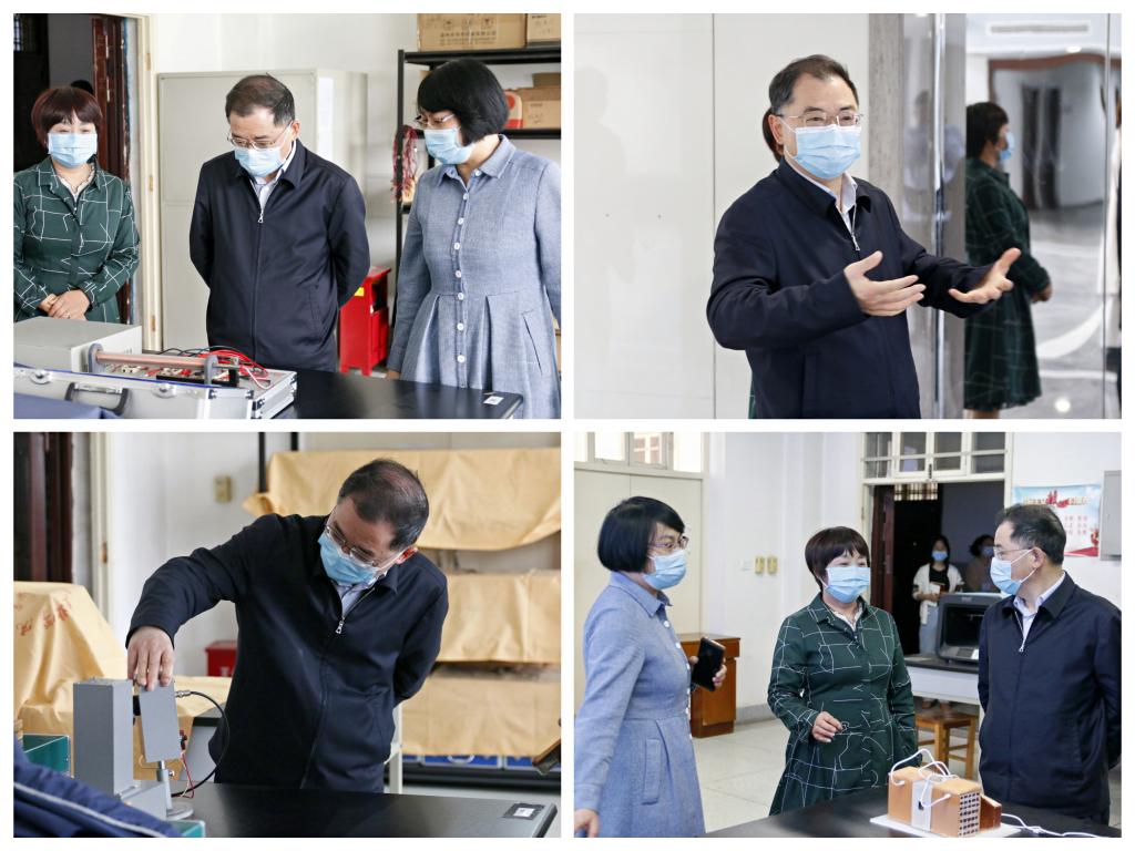 物理实验室、理科思维实训基地、语音室进行参观。赵校长仔细听取了学院领导对于各实验室的介绍,并提出了工作建议。
