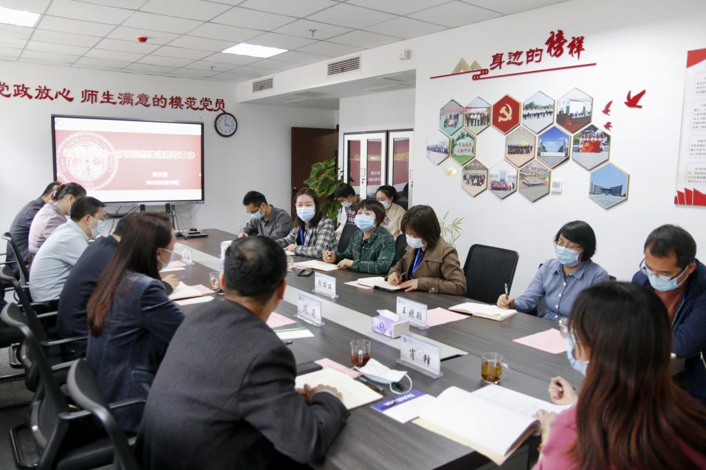 首先,刘改琳汇报学院整体工作。刘改琳从学院基本情况、学院2021年度工作总结、下一步工作设想及2022年度工作思路、存在的问题和解决思路等四个方面做了详细汇报。各职能处室负责人与院领导班子深入交流,针对学院实际情况提出工作思路和改进建议。