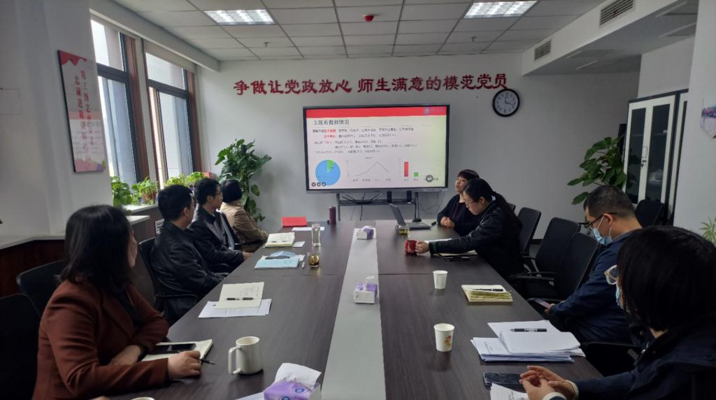 首先,刘改琳汇报学院整体工作。刘改琳从学院基本情况、2021年度工作总结、下一步工作设想、存在的问题和解决思路等四个方面做了详细汇报。