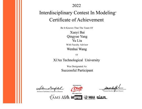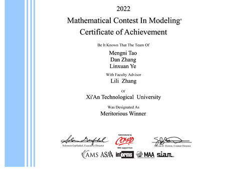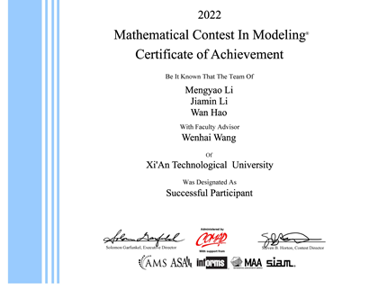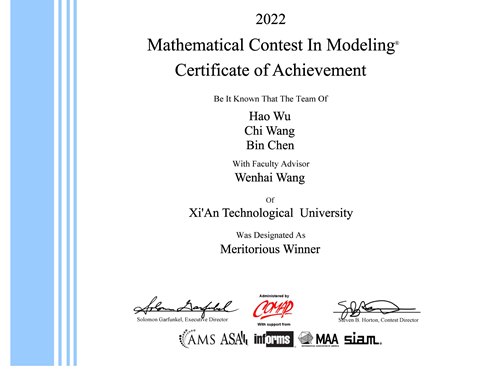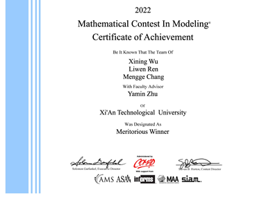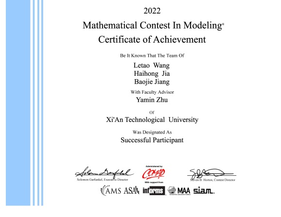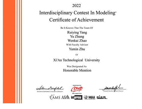 2022年美国大学生数学建模竞赛我校获奖名单及证书