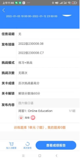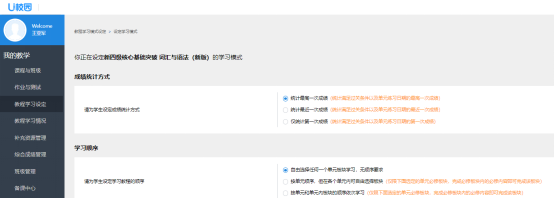 教材出版社提供的U校园和Welearn平台,不仅呈现了教材的电子版、配备了主题内容的音频资料,师生还可以借助平台其他可利用资源,如:为了夯实英语基础,教师在U校园上添加了“新四级核心基础突破(词汇与语法)”,同时可以设置学习模式并监督学习过程,有效延伸了课堂内容,拓展了学生学习空间。如图1所示: