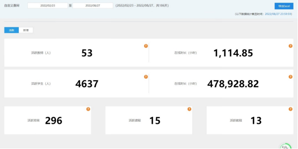 教师借助平台设置学习过程的要求,如内容、时间、分值等,平台实时记录学生学习行为轨迹及学习成果,成绩不掺杂任何人为因素,从这个意义上讲,考核结果客观公正,教师可直接导出并应用。如图6所示: