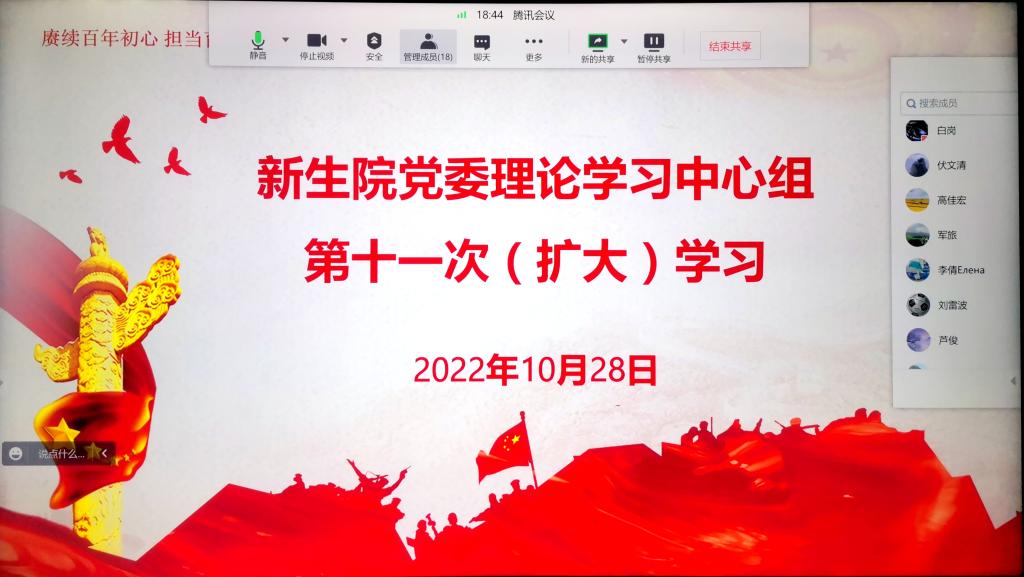 党委理论学习中心组(扩大)学习在双创楼604会议室进行。学习采用线上线下相结合的方式,党委书记姬洪波主持,党委理论学习中心组成员、各支部书记、各系(中心)主任参加学习。