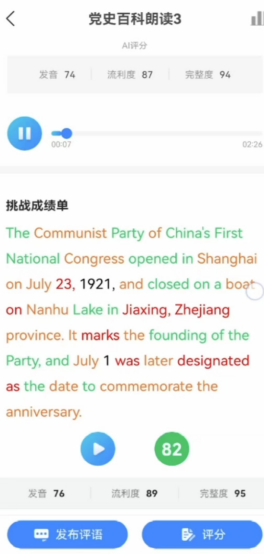 开展党史知识英语晨读活动。本次活动采取手机APP打卡给分的形式进行,同学们每周三、五早上8点前在FIF软件上完成党史百科知识英语朗读,活动持续一个月。