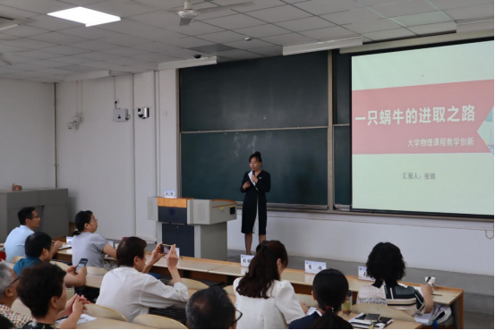 张锦副教授以“一只蜗牛的进取之路”为题,讲述了自己的数学竞赛和科研求学之路,并分享了卓有成效的教学设计。通过电影与物理融合激发学生学习欲望,采用软件计算、硬件教具、虚拟仿真和实践作品进课堂的教学手段,信息赋能过程性的教学评价,让课堂有温度、有乐趣、有创新。此外,无码流出