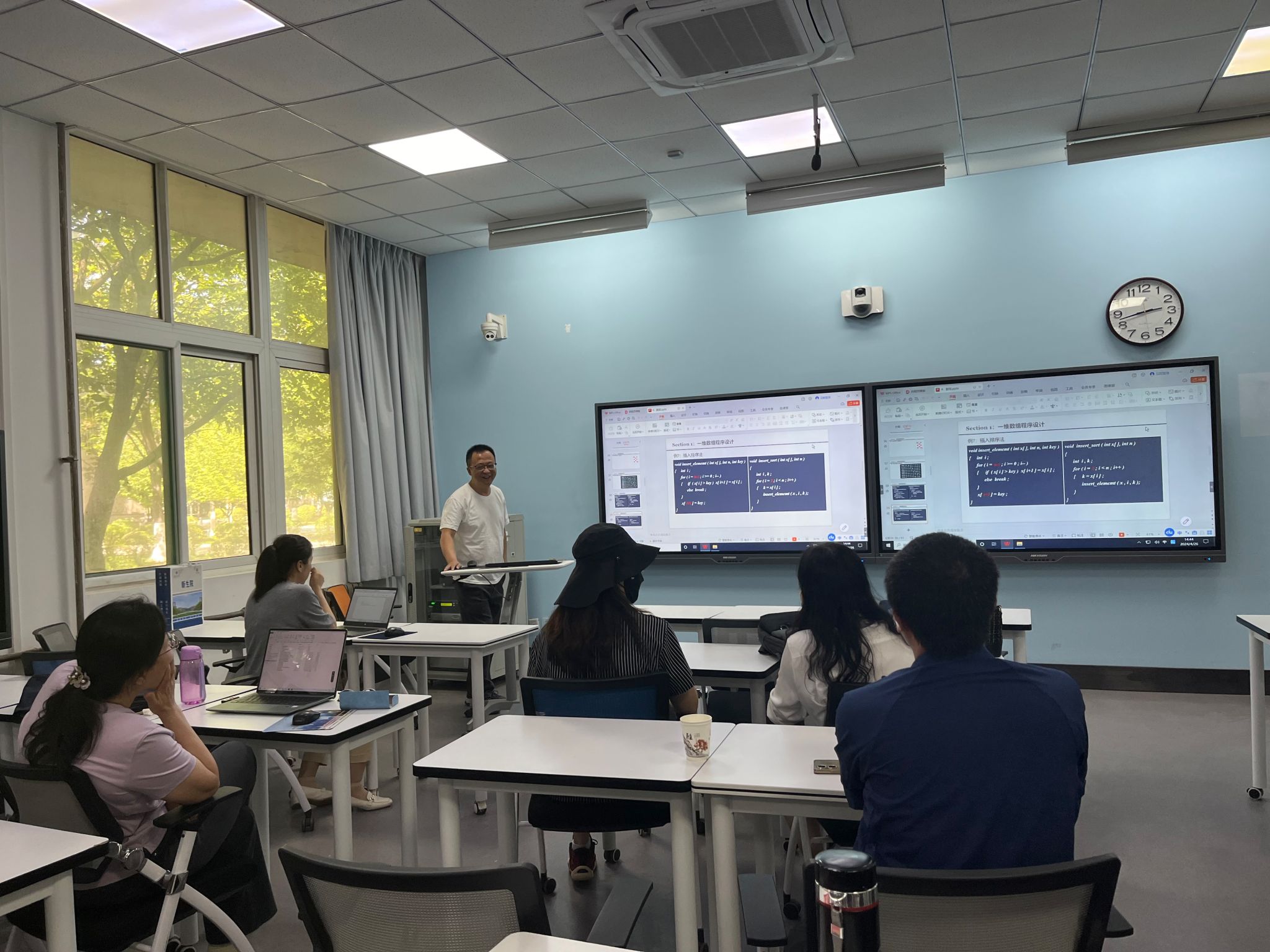 图学与信息系计算机教研室全体老师会聚在教3-106教室,召开“C/C++程序设计”课程教学研讨会。本次研讨会旨在探讨计算机基础课程教学中的“数智化”应用创新与发展,共同推动程序设计类课程教学的改革。