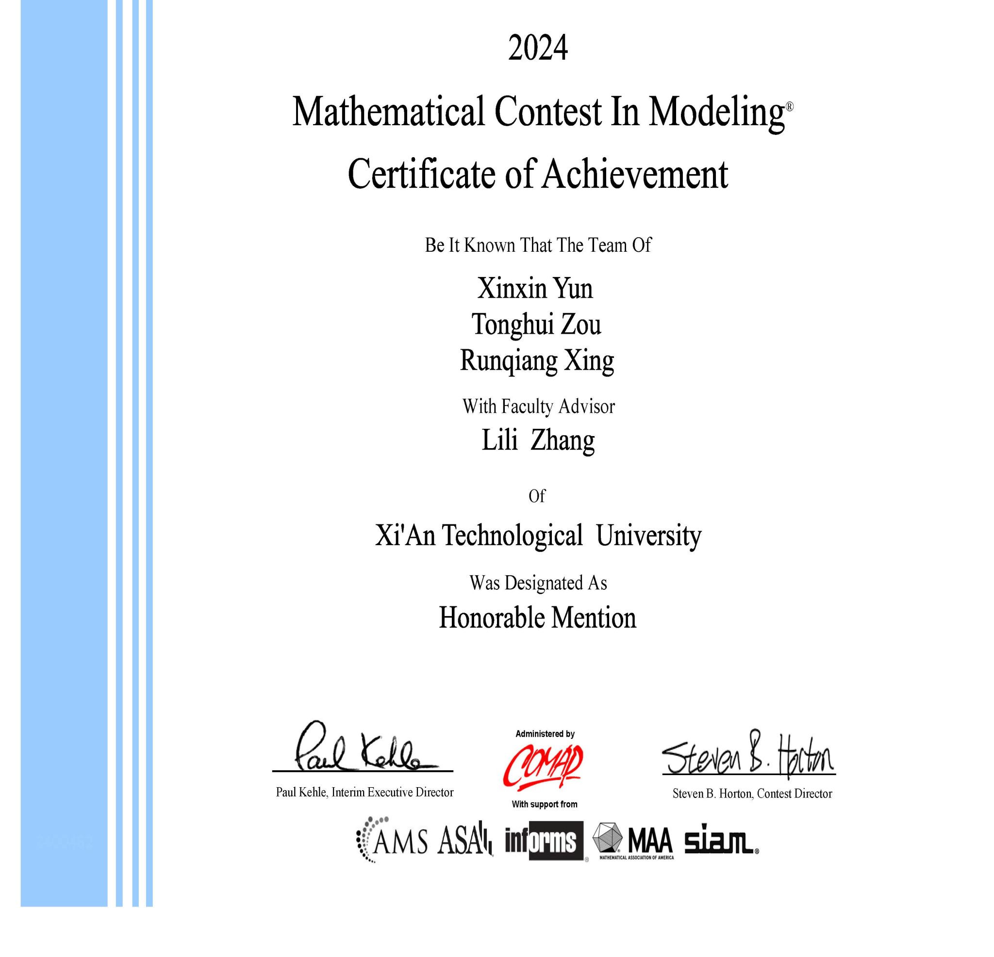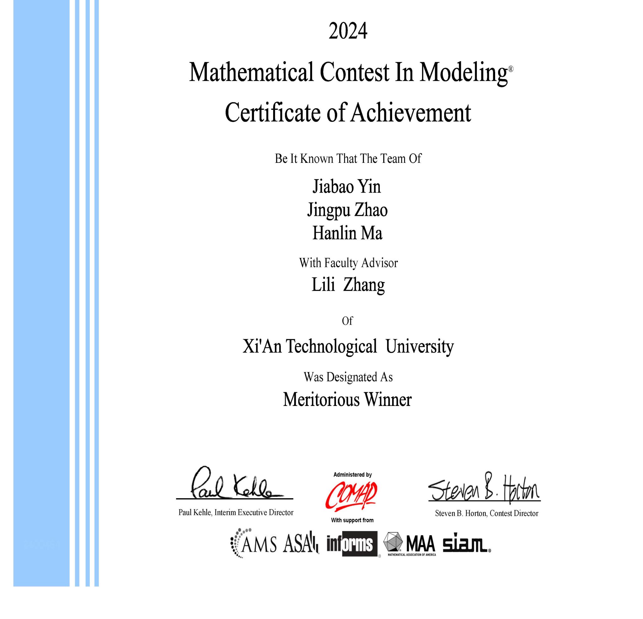 近日,2024年美国大学生数学建模竞赛成绩公布,本次大赛我校15支队伍报名参赛,共获得国际一等奖(M奖)2项,国际二等奖(H奖)5项,优秀奖(S奖)8项,获奖数量再创新高。