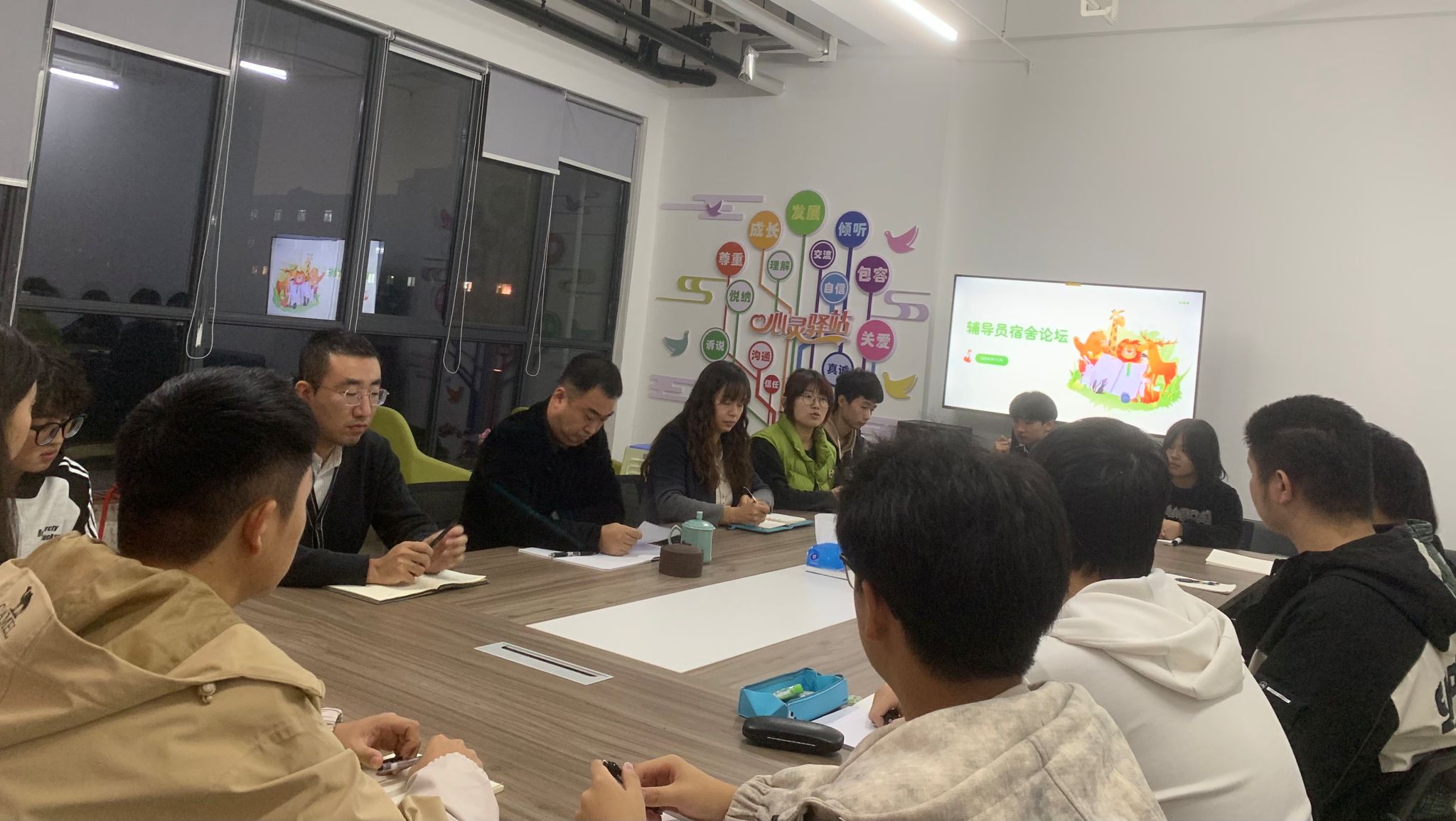 在14公寓活动室举办辅导员宿舍论坛。院党委副书记翟超、学工办主任王娟、社区长徐慧子、刘昊雨与学生代表参加活动。