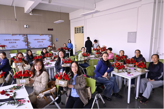 举办“七秩芳华·巾帼献礼”主题花艺沙龙,庆祝国际妇女节与建校70周年。女教职工通过创意插花,以艺术创作献礼校庆。