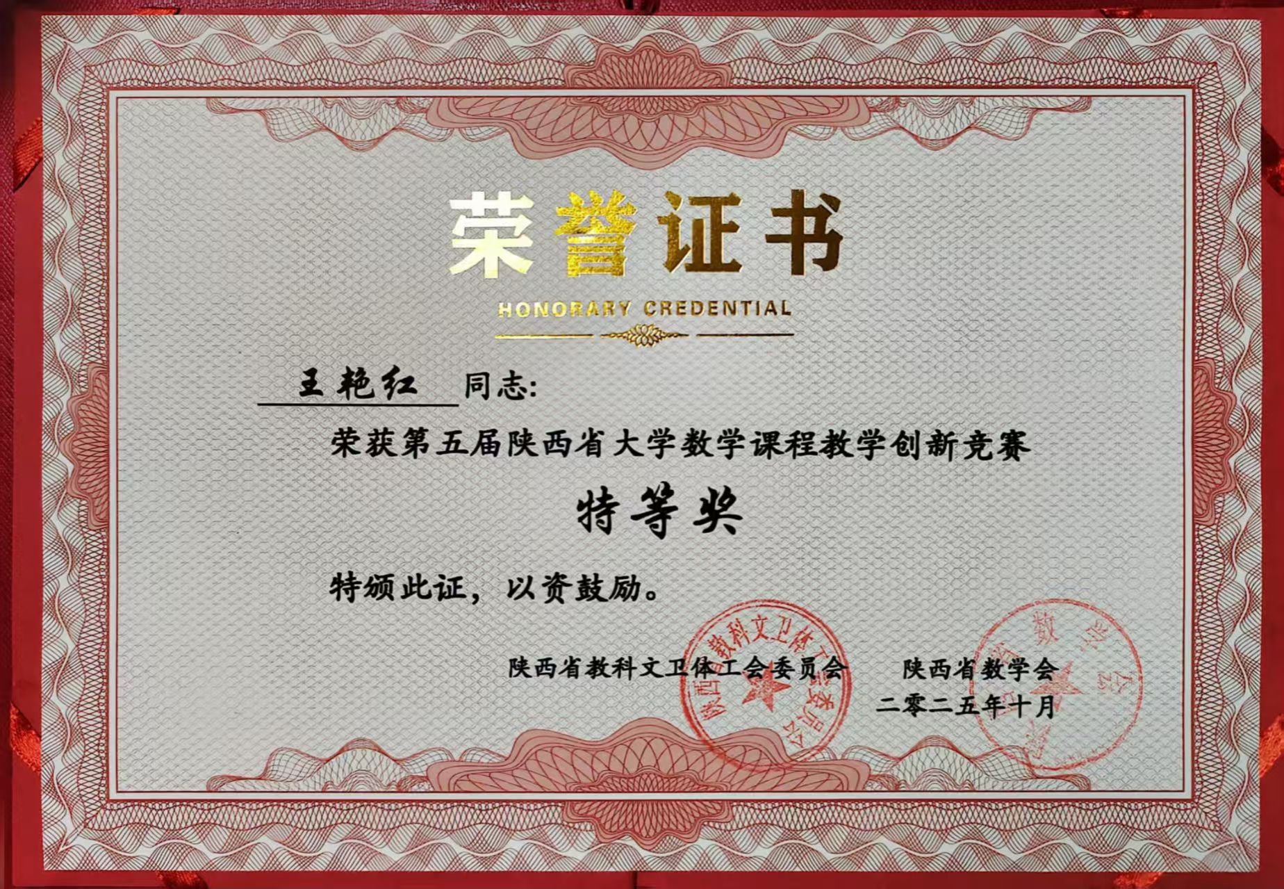 在此次竞赛中表现突出,获奖5项:数学系教师王艳红荣获特等奖(第一名),李倩获一等奖(第一名),陈卓钰、李歌分获二等奖,我校荣获本次竞赛“优秀组织奖”。据悉,此次竞赛,经教师申报、材料评审、组委会组织专家函评和会评,共评出特等奖7名,一等奖13名,二等奖24名,三等奖33名,优秀组织奖5个。
