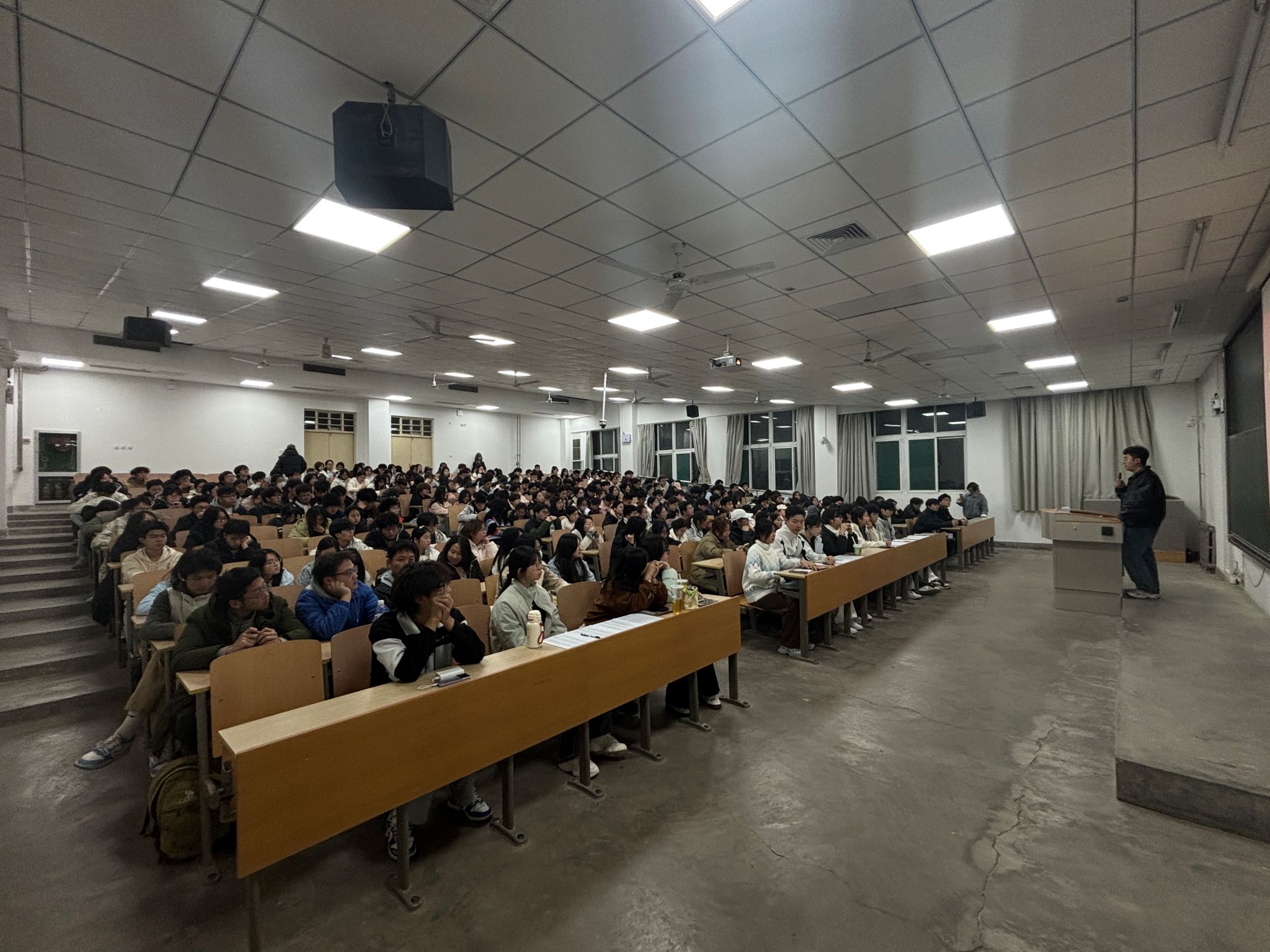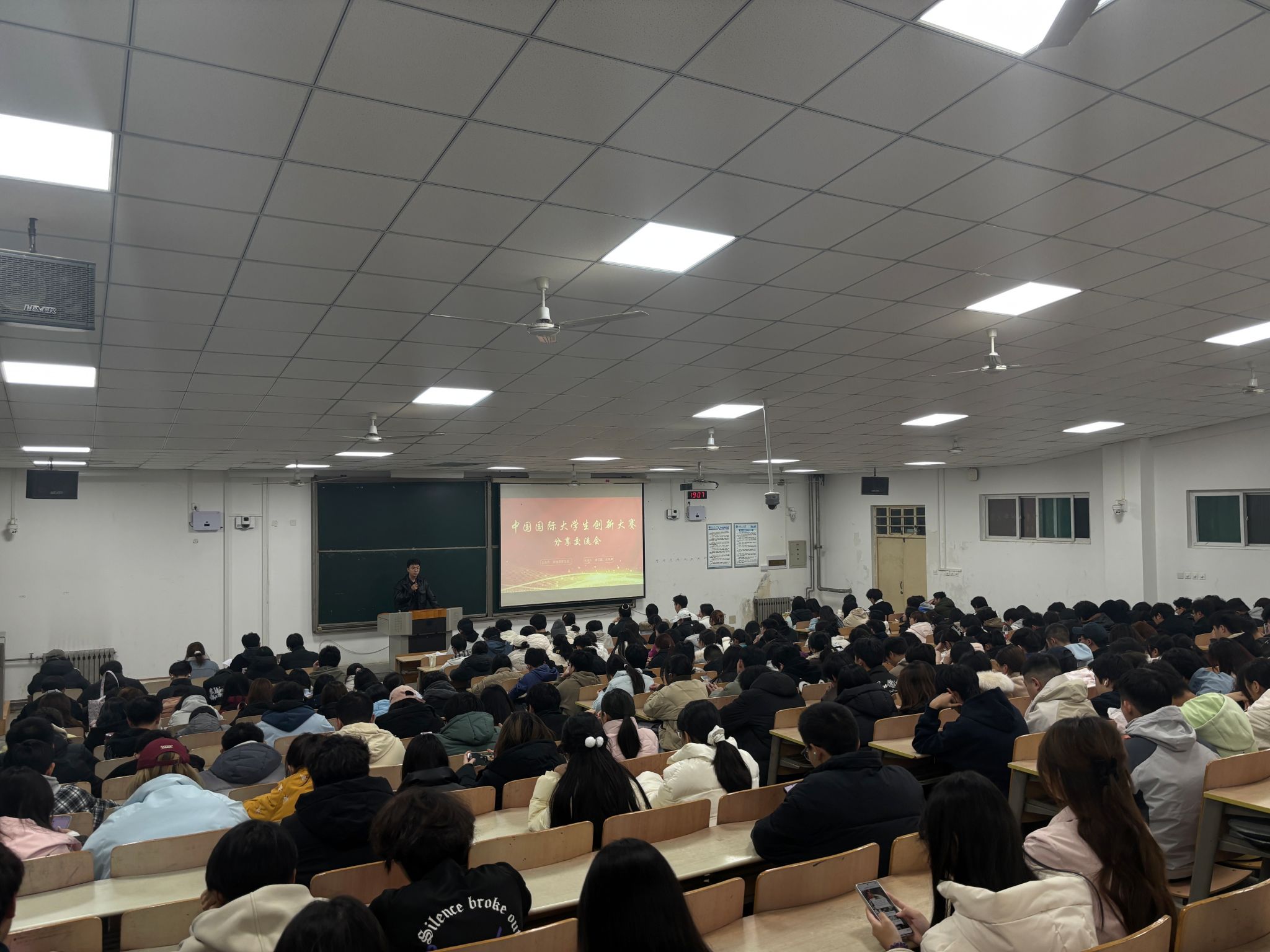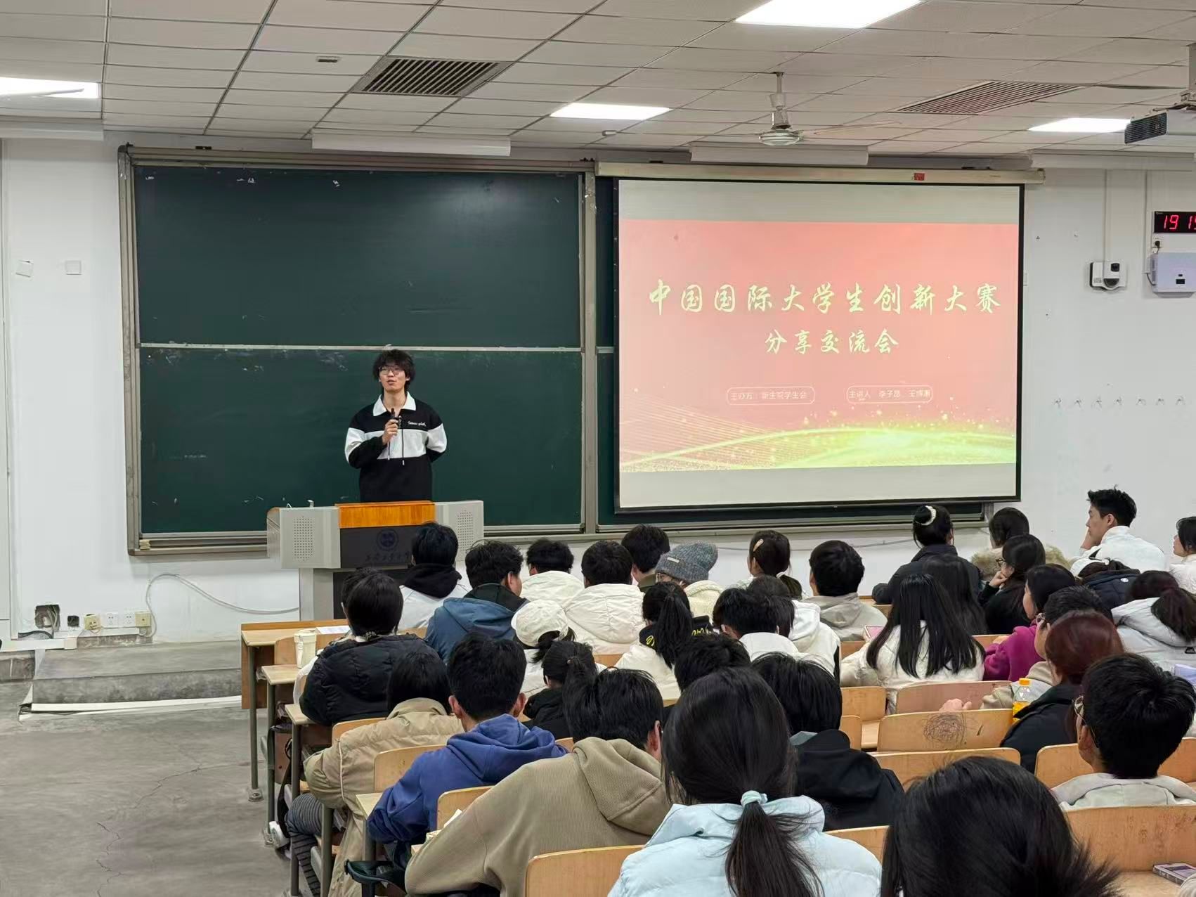 举办中国国际大学生创新大赛经验交流分享会。邀请我校2025年中国国际大学生创新大赛国家级铜奖、省级金奖获得者朱晋辉、李子昂进行交流,300余名学生参加。
