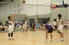 篮球选项班学生在比赛中进行裁判实习 大学体育课程展示:广播操大赛