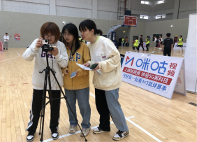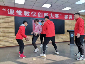 刘鹏老师在篮球比赛间隙为裁判员讲解规则 周莎莎老师参加教师讲课比赛获得二等奖