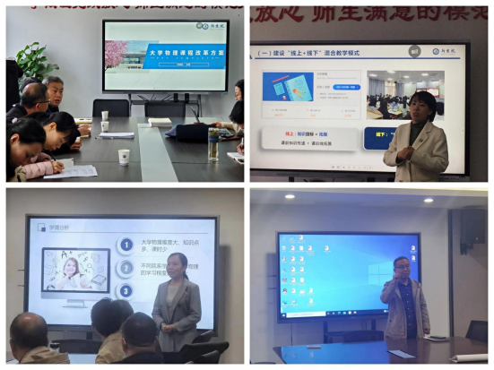 为使课程改革落地,物理系分别成立大学物理课程改革小组和大学物理实验课程改革小组。大学物理课程改革小组分为思政案例、工程案例、习题库、线上短视频建设团队,大学物理实验课程改革小组分为课程内容筛选、线上电子资源建设、新项目开发及资料准备、运行与管理方案及制度建设团队。通过团队讨论交流,转变教学理念,提高教学水平,增强师资队伍建设。