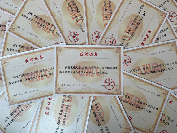 通过数学学科竞赛、创新创业项目等,提升学生实践应用能力。为学生搭建了阶梯型、层进式学科竞赛平台。使学生掌握数学课程的思维方法,并将其应用到其他课程和学科竞赛中,产生持久影响力。近三年来,学校学生参加数学学科竞赛,获奖数量和质量都有了很大的提升。尤其是2021年,学校获全国大学生数学建模竞赛2项国家级一等奖。此次,陕西赛区共获得全国一等奖20项,学校占1/10。2022年,学校首次参加美国大学生数学建模竞赛,报名8支队伍,获得国际一等奖(M奖)3项,二等奖(H奖)1项,优秀奖(S奖)4项。全球国际一等奖(M奖)获奖比例是7%,学校国际一等奖获奖比例是37.5%,远远高于全球平均水平。