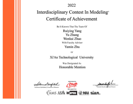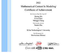 数学系教师指导学生参加美国大学生数学建模竞赛获奖证书(部分)