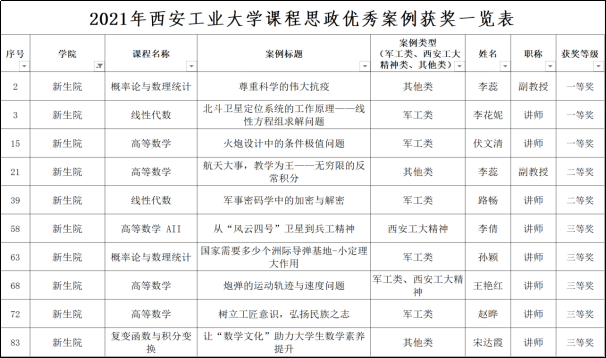 在教学大纲指导下,深入挖掘课程思政元素及案例,编撰《高等数学》《线性代数》和《概率论与数理统计》三门数学课课程思政案例集。在课堂上,数学系教师为学生建立严密完备逻辑体系、亲笔推演公式定理、细诉数学文化数学发展,弘扬兵工精神、阐述西工故事,厚植爱国主义情怀,将立德树人落到实处,助力学生成长成才。把思想政治教育贯穿于大学数学课程教学全过程,实现显性和隐性教育的有机融合。2020年数学系获批课程思政专项教改项目3项,并且3门课程被评为校级课程思政示范课。2021年,在陕西省大学数学课程思政教学案例评选中获特等奖、一等奖、二等奖共5项;在无码流出