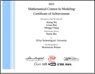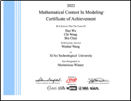 开展学科竞赛、课外实践活动,提升学生实践应用能力。为学生搭建了阶梯型、层进式学科竞赛平台。第一层宣讲推广;第二层为校内专题培训;第三层为校赛选拔;第四层为暑期集训;第五层为省赛练兵;第六层为国赛挑战。使学生掌握高等数学、概率统计等数学课程的思维方法,并将其应用到其他课程和学科竞赛中,产生持久影响力。我校学生申报和参加各级大学生创新创业项目成绩突出,数学系教师指导省级大学生创新创业项目获得优秀结题。近三年来,我校学生参加数学学科竞赛,获奖数量和质量都有了很大的提升。2021年,我校获全国大学生数学建模竞赛2项国家级一等奖。此次,陕西赛区共获得全国一等奖20项,我校占1/10。2022年,我校首次参加美国大学生数学建模竞赛,报名8支队伍,获得国际一等奖(M奖)3项,二等奖(H奖)1项,优秀奖(S奖)4项。我校国际一等奖获奖比例达37.5%,远远高于全球国际一等奖(M奖)获奖比例7%。