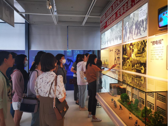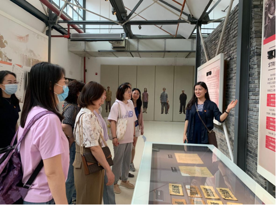 党员老师在大华纺织厂发展史展板前驻足了解