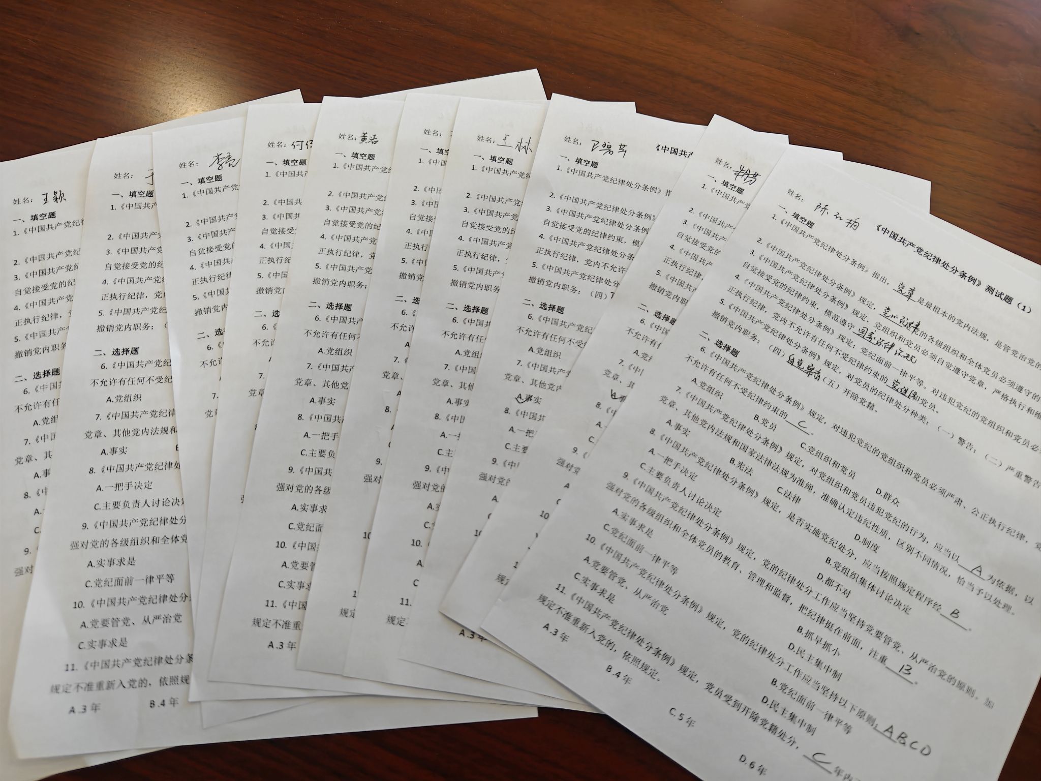 此次学习会共分为四个阶段。首先,由支部书记王海莺领学,重点围绕加强党的纪律建设、深化对党的纪律规定的理解和遵守、提高党员干部的纪律意识和规矩意识等方面进行详细学习。随后,全体党员对《条例》第二、三章进行逐字逐句学习,就学习心得体会展开交流。之后,通过视频方式加深各位党员对党纪学习教育目标和重要性的认识和理解,并组织全体党员一起观看了警示教育纪录片,对涉及的典型案例进行了深入剖析。最后,为巩固专题学习成效,引导同志们进一步夯实学纪基础,全体党员同志完成了《条例》学习的第一次测试。