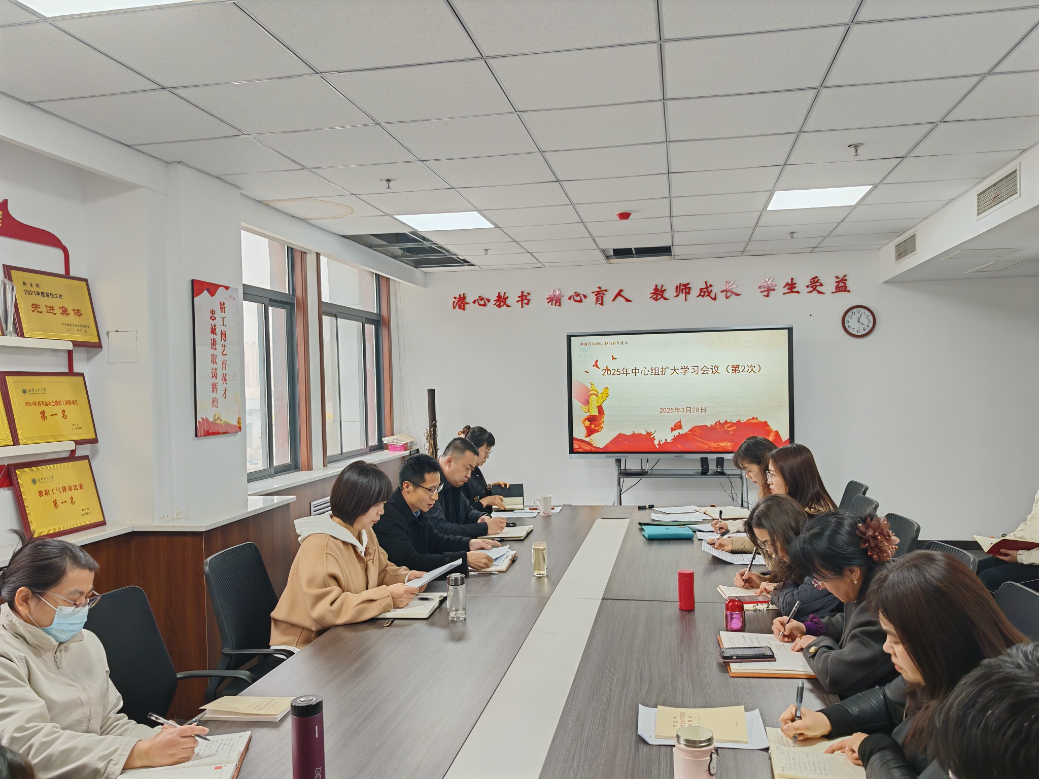 会议集中学习了习近平总书记在中共中央政治局第十九次集体学习时的重要讲话,习近平总书记在看望参加政协会议的民盟民进教育界委员时的重要讲话,全国两会精神和《习近平关于加强党的作风建设论述摘编》部分内容。副院长张华同志在会上围绕建设教育强国、科技强国、人才强国一体发展作了主题发言,办公室党支部张向阳以“科学家精神”为题交流分享了学习心得和感悟。与会人员集体观看了党建规范化教育视频《如何落实重大事项请示报告制度》。