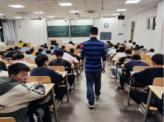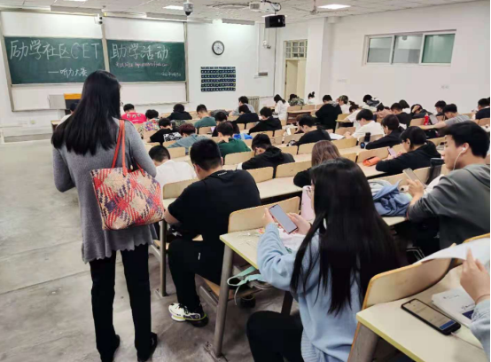 4月29日晚自习,“以赛促学——励学社区CET4助学系列活动”第二场——听力大赛在自习教室举办。此系列活动基于“一月一题型”的复习理念,意在督促同学们根据不同题型认真复习、积极备战英语四级考试。并通过“一月一竞赛”的方式,对各位同学的复习成果进行测试,协助学生查缺补漏,提高学生复习水平。励学社区大组长芦俊老师及全体辅导员到场监考。