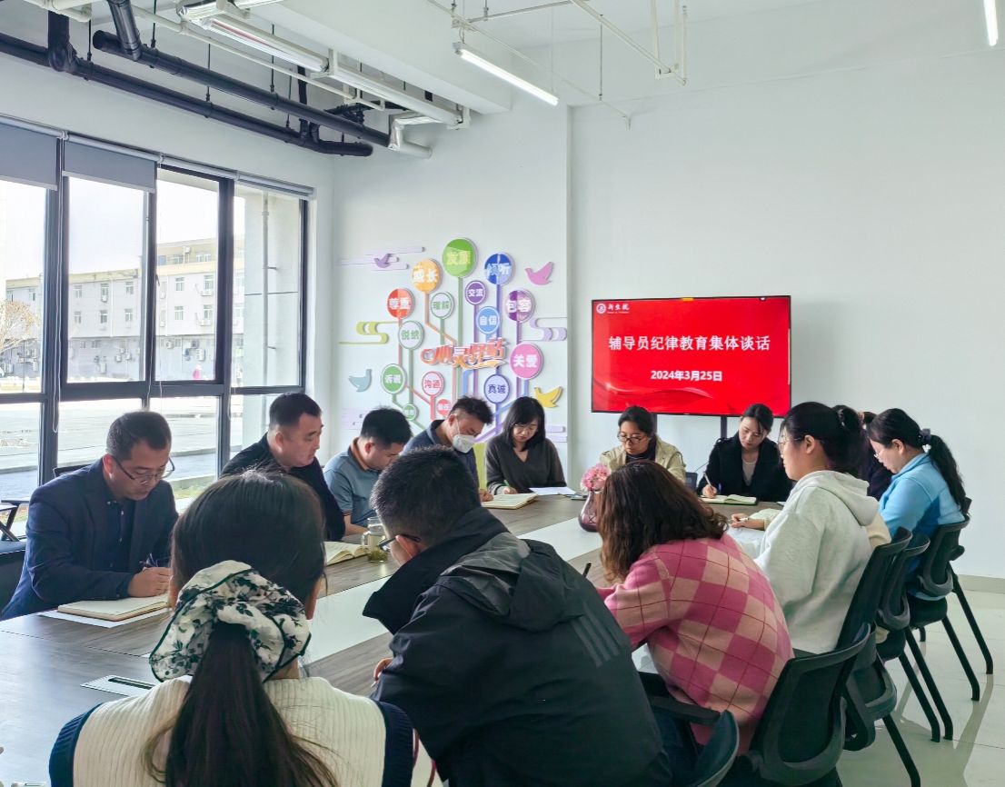 在14-110召开辅导员纪律教育集体谈话,会议由院党委副书记、纪委书记翟超主持,全体辅导员参会。