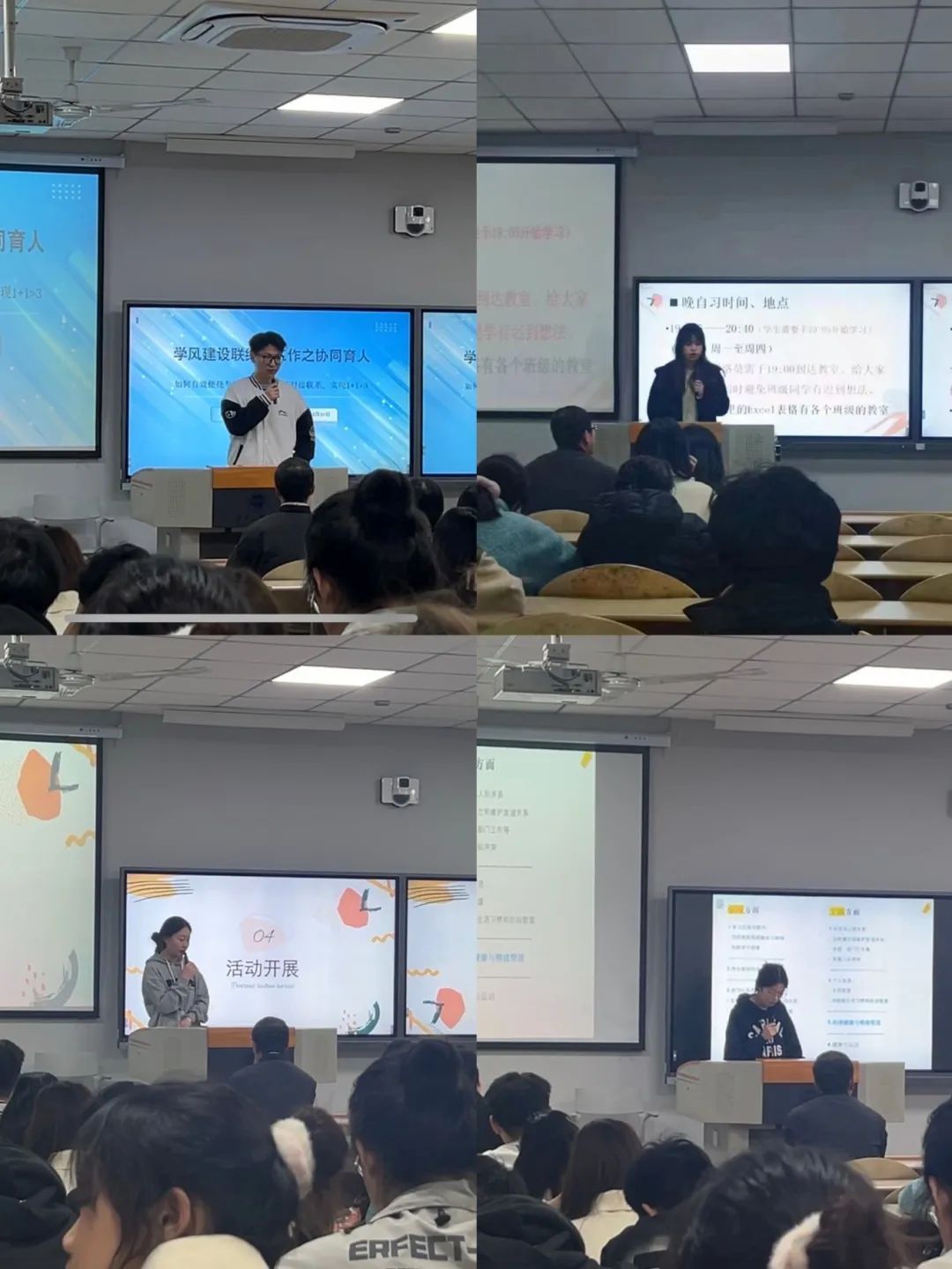 本次培训邀请谭达月、罗文燕、蒲甜甜、徐清华四名高年级学风建设联络员进行。他们结合自己担任学风建设联络员的工作经历分别从所带班的日常管理、朋辈帮扶、协同育人、活动开展等方面与大家进行深入交流,统一思想、达成共识。