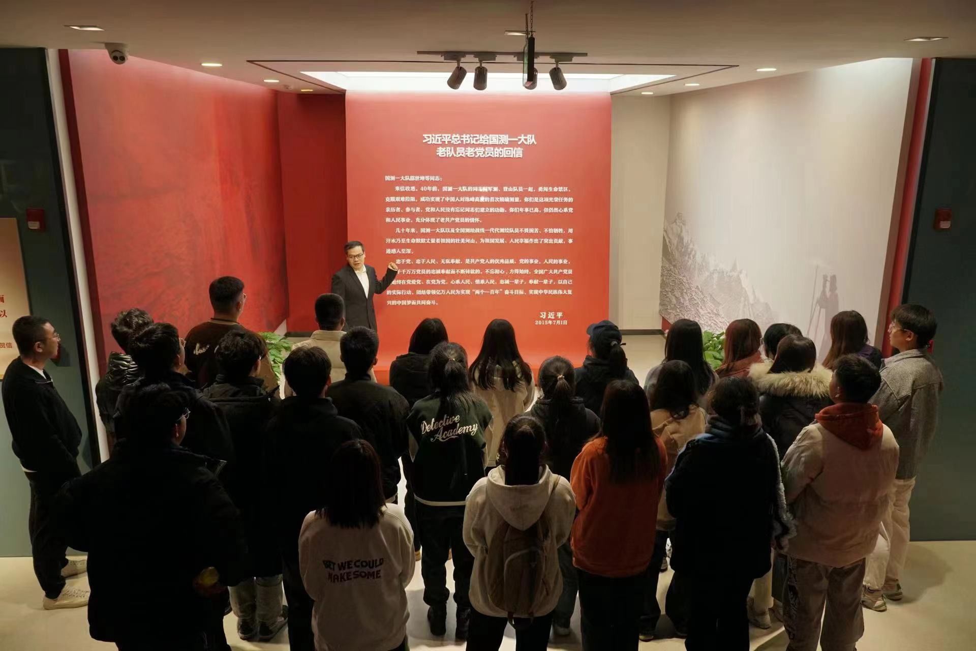 师生通过实地参观国测一大队精神展室,重温了习近平总书记给国测一大队老队员、老党员的回信精神,认真聆听了珠峰测量背后的故事,观看了不同时期的测绘老照片与测绘仪器设备,特别是珠峰高程测量的沙盘模型和测绘集体的荣誉奖项,使大家深深感受到了榜样的力量。