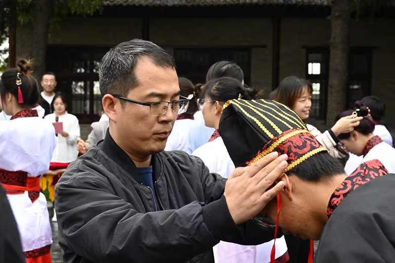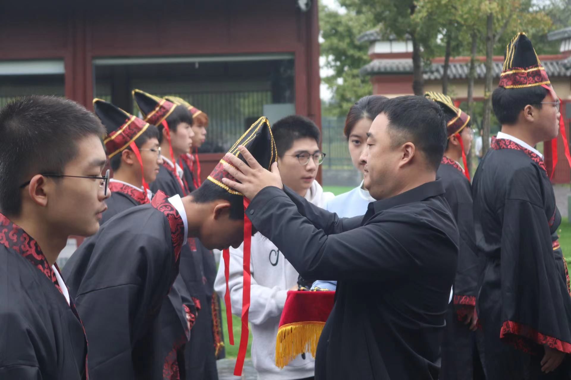 伴着礼乐,学生身着传统汉服入场,师长依次为学生加冠、加笄,见证学子们正式跨入成人行列。学子集体行感恩礼,表达对师长的敬重与感激。学子代表领誓,铮铮誓言,展现了学子们立大志,成大才,担大任的决心和魄力。