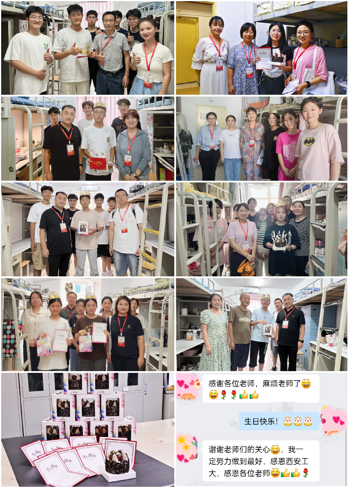 29日下午,学院领导、辅导员走进宿舍看望新生,与新生亲切交流,听取他们初入校园的感受。学院还为当天过生日的11位新生秘密定制了生日蛋糕,学院领导、辅导员来到学生宿舍举办了一场别开生面的生日会,为小萌新们送上祝福。