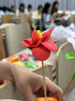 同学们热情高涨,指导老师耐心指导捏、搓、切等基本手法,从最简单的形状开始,逐渐塑造出复杂的造型。原本普通的面团在同学们的手中渐渐有了生命,变成了色彩鲜艳、造型各异的小动物、娇艳的花朵等充满童趣与创意的作品。大家相互交流、分享经验,现场气氛热烈而融洽。