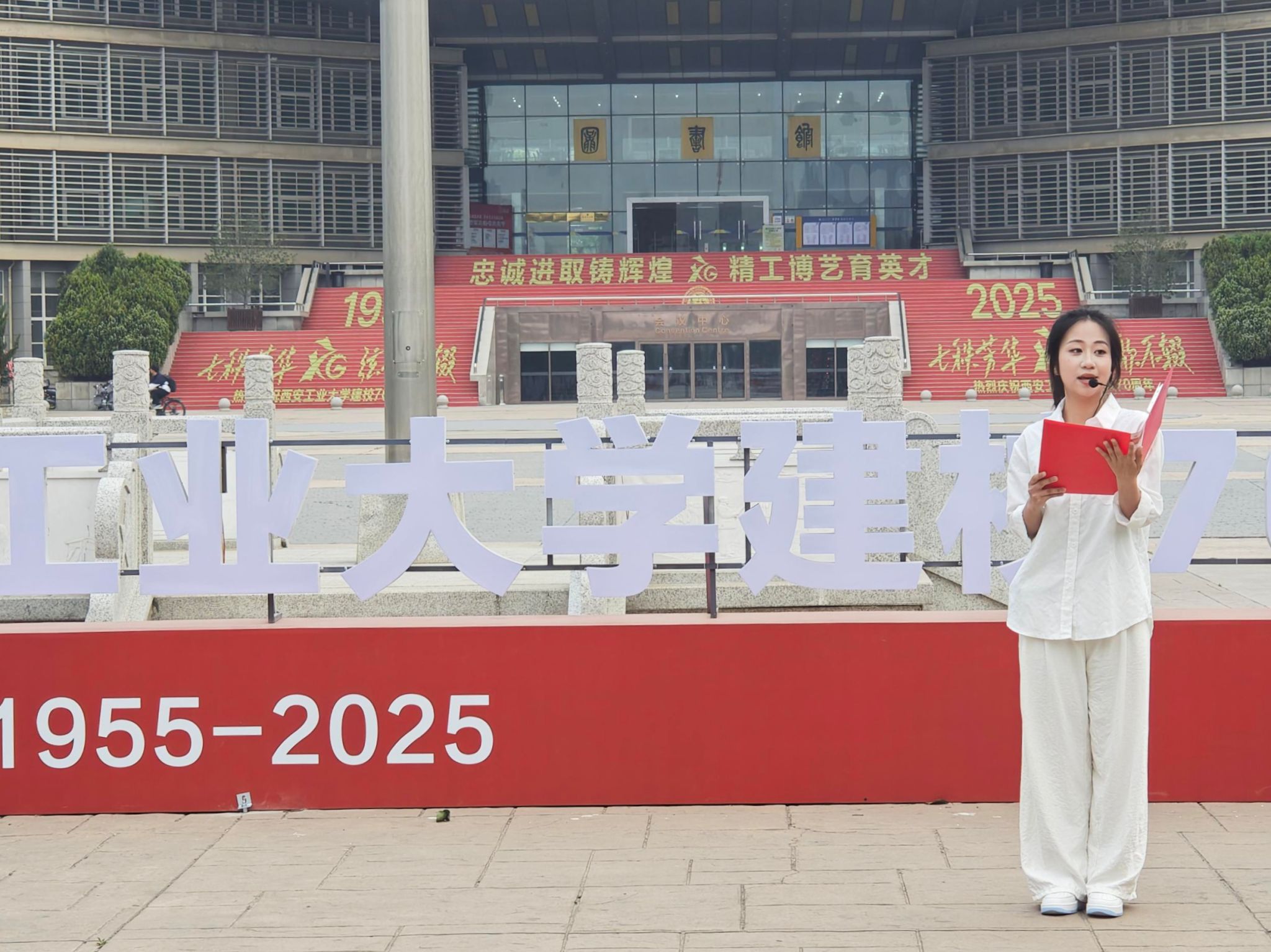 学生代表贺璐璐以“七秩薪火绽荣光 家国共进启新程”为主题进行国旗下演讲,共同祝愿母校70周年生日快乐,希望全体师生秉承“敦德励学,知行相长”的校训,携手并肩,传承人民兵工精神,为母校的发展注入蓬勃动力。