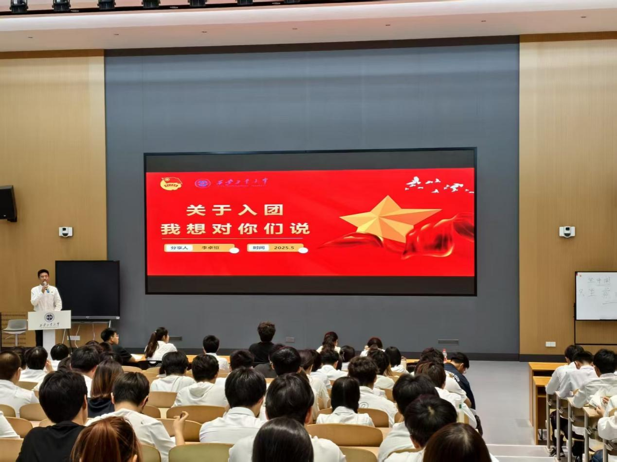 在教3-217举办“学思践悟强信念 青年担当践初心”主题团课。本次团课邀请2025年校园“竞赛之星”李卓恒、院青年志愿者协会主席团成员刘茗妍同学主讲,院团委副书记梅凯及本期入团积极分子参加。
