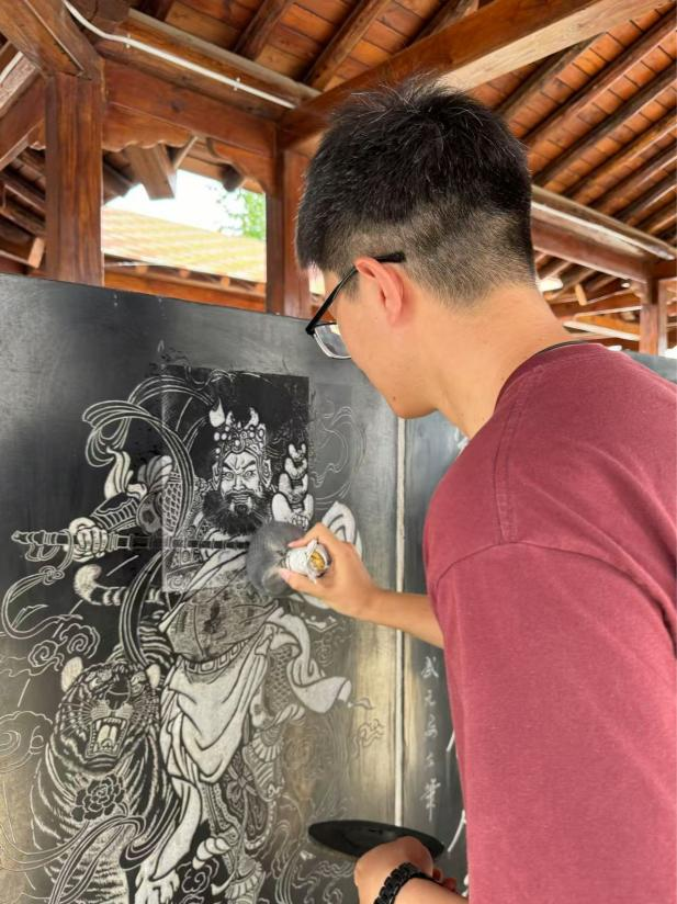 活动现场氛围热烈,同学们相互交流经验,分享自己的创作心得。除了传统的文字拓片,有的同学还尝试对具有中国传统文化特色的人物、故事的石雕图案进行拓印。经过两个多小时的努力,一幅幅风格各异的拓片作品新鲜出炉,每一幅都凝聚着同学们对非遗文化的热情与探索。