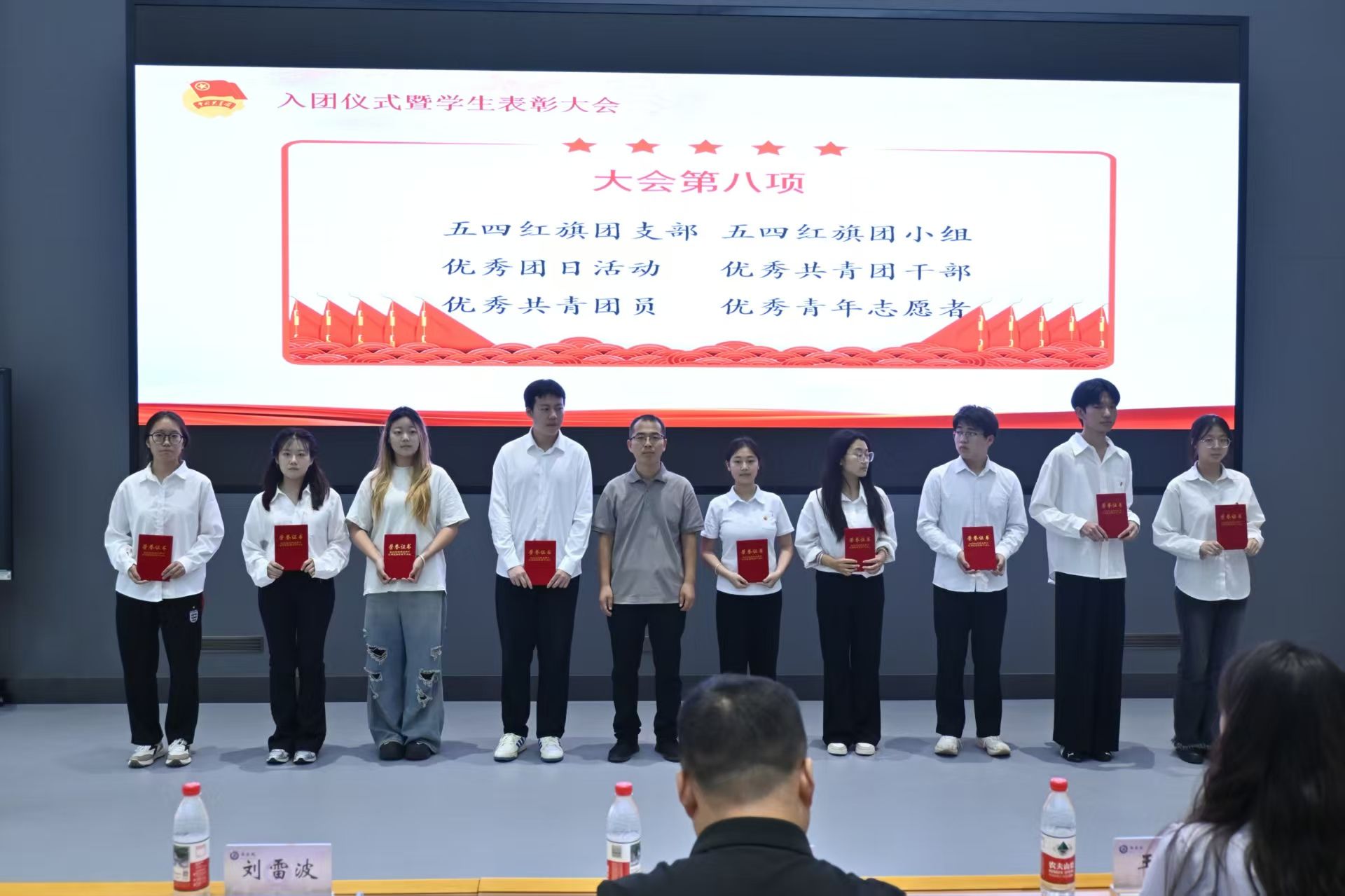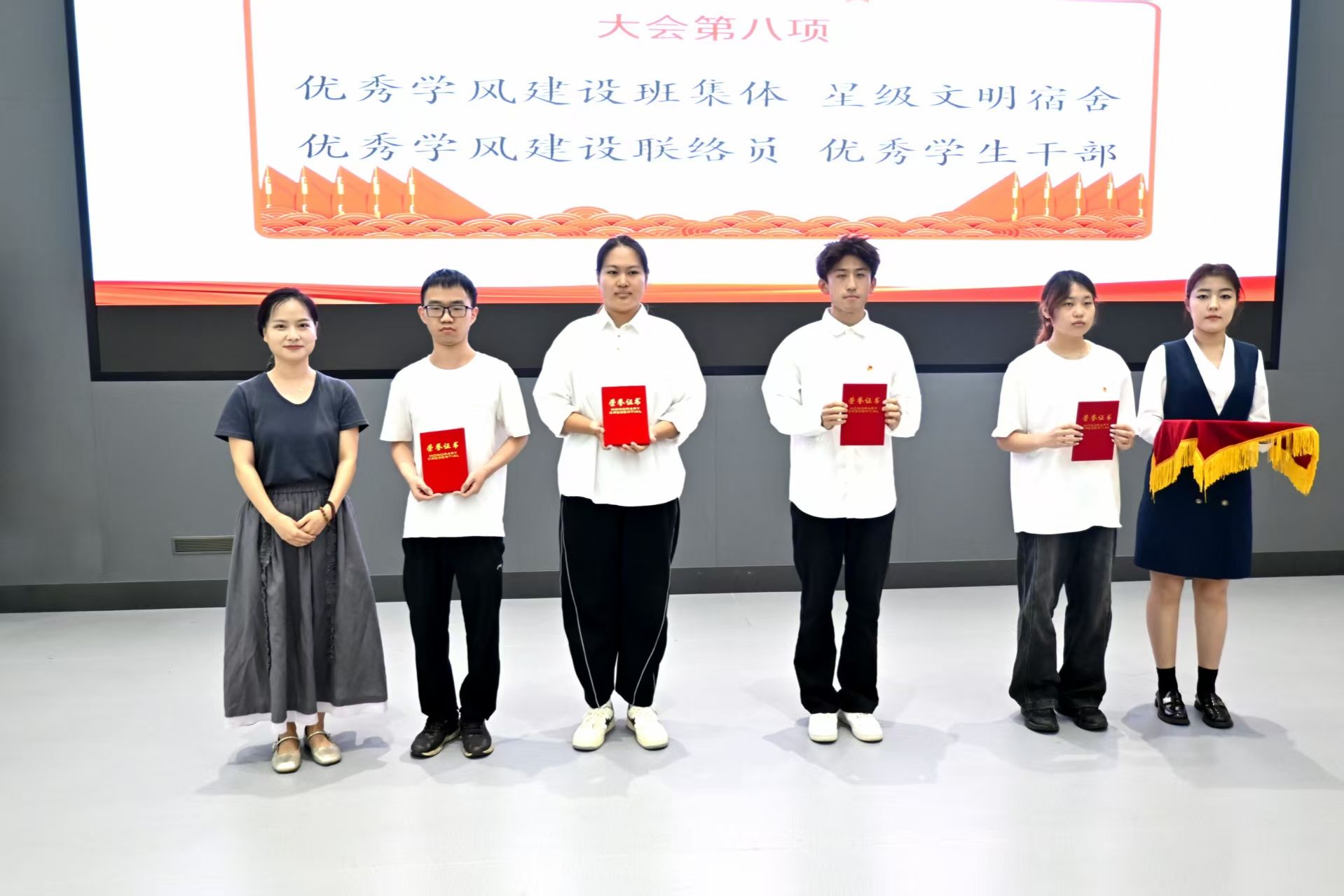 院团委书记刘雷波、敦德社区长马芳荣、励学社区长刘叶分别为先进集体和先进个人获奖学生代表颁发荣誉证书,表彰他们过去一年在学习、工作、生活、实践等方面的优异表现。