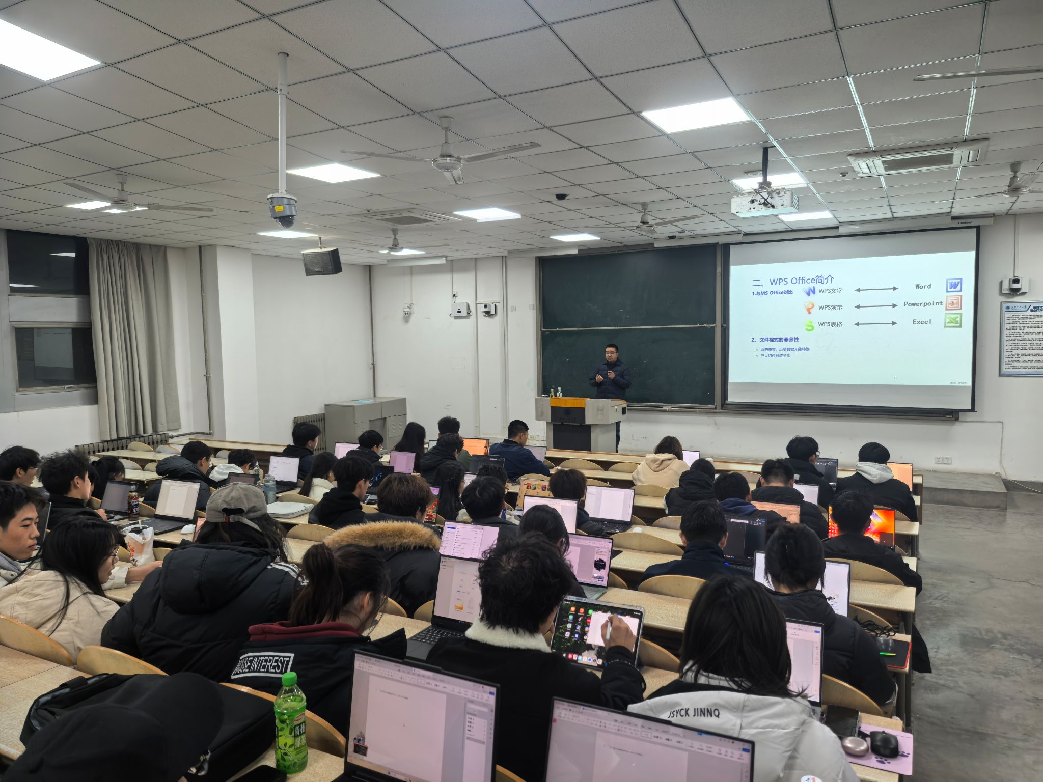 培训聚焦学生工作实际需求,内容涵盖Word文档规范排版、Excel数据整理与分析、PPT演示文稿设计与制作等核心技能。通过“理论讲解+实例操作”相结合的方式,深入浅出地演示了常用功能与实用技巧,并针对工作中常见的文件撰写、数据统计、活动策划案及汇报展示等场景进行了针对性指导。