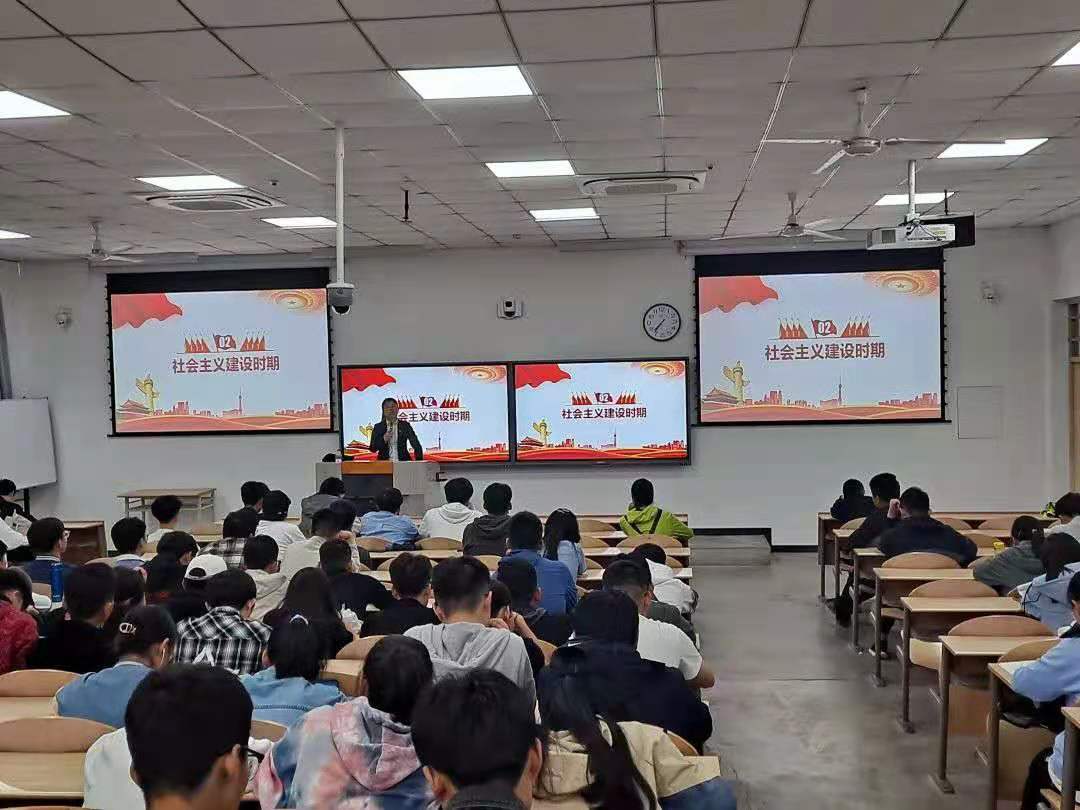 杨老师以三个不同时期为节点,将一幅幅历史画卷在同学们面前徐徐展开。宣讲以新民主主义革命时期为开端,介绍了这个时期曾经历过的五四爱国运动和新中国成立这两大历史事件,接着过渡到社会主义建设时期,在此期间社会主义建设经历了从探索中前进到全面建设社会主义,最后为改革开放新时期,改革开放是1978年12月十一届三中全会中国开始实行的对内改革、对外开放的政策。