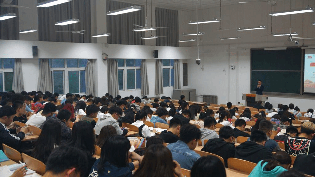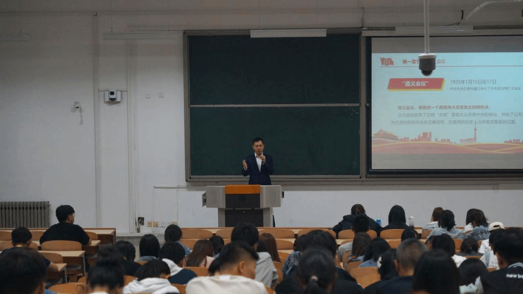 300余名学生在教1-205参加党史宣讲活动。本次活动邀请学生处学生教育科科长韩霄老师做主题宣讲。