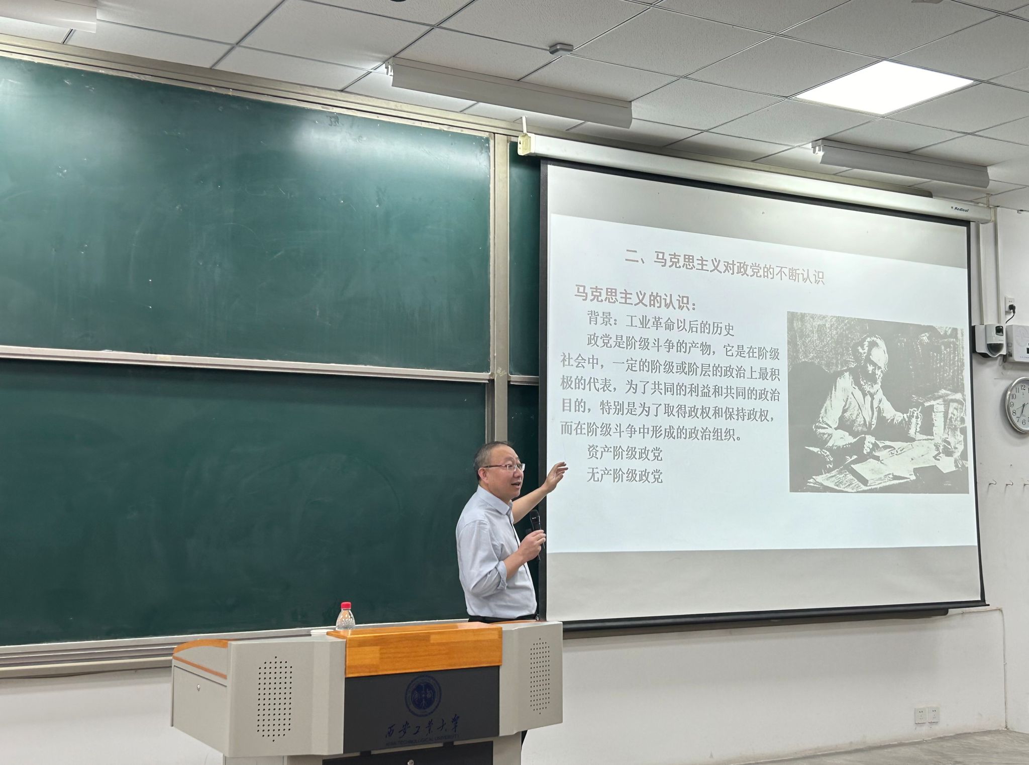 在教1-101、教1-102教室举行第七期入党积极分子培训班理论授课第五讲,邀请校党委委员、组织部部长、党校常务副校长何春水进行授课,本期培训班全体学员参加。