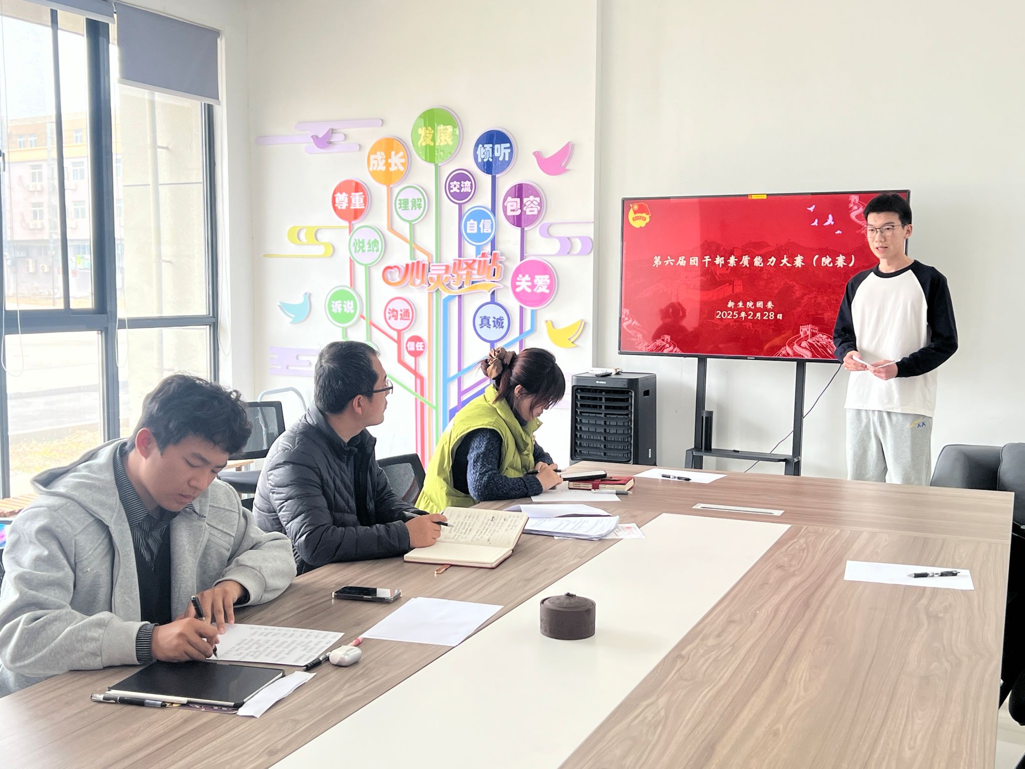 在14-110举办第六届团干部素质能力大赛(院赛),院团委书记刘雷波,副书记牟雪艺、杨琼、徐慧子担任评委。