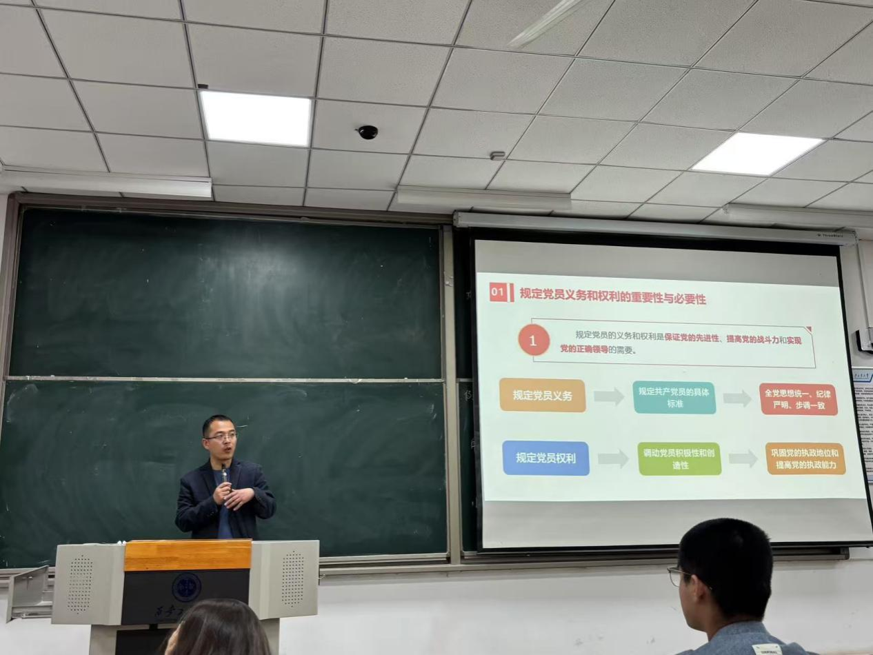 刘雷波老师从“认真履行党员义务”“正确行使党员权利”“辩证统一地认识党员的义务与权力”三个方面向学员们阐释了党员的义务与权力以及二者之间辩证统一的关系,为学员们开展了一次深刻的教育和启迪。