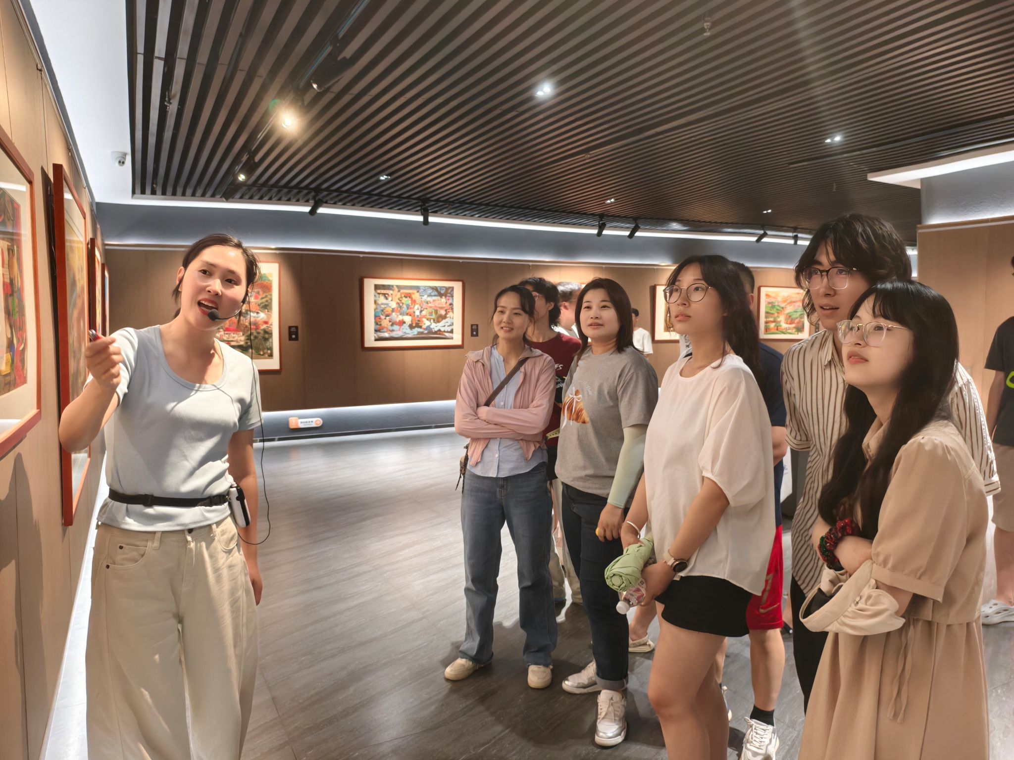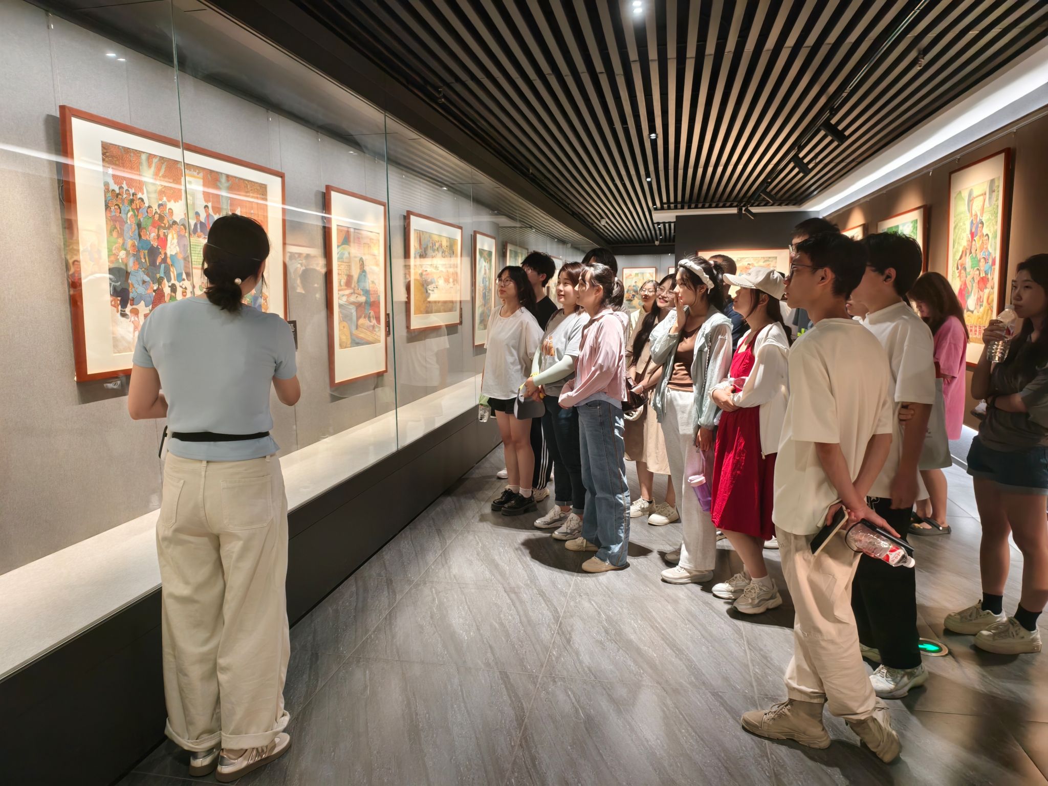 走进展览馆,讲解员从创作背景、艺术手法、作品内容等角度,细致解读了《老书记》《虎口夺粮》《爷孙仨》《丰收鼓》《吉日》等代表作品,让同学们深入了解了中国农村的历史变迁和文化发展,深刻感受到中国传统文化的独特魅力和强大生命力,更加感受到中国农民的智慧和创造力。