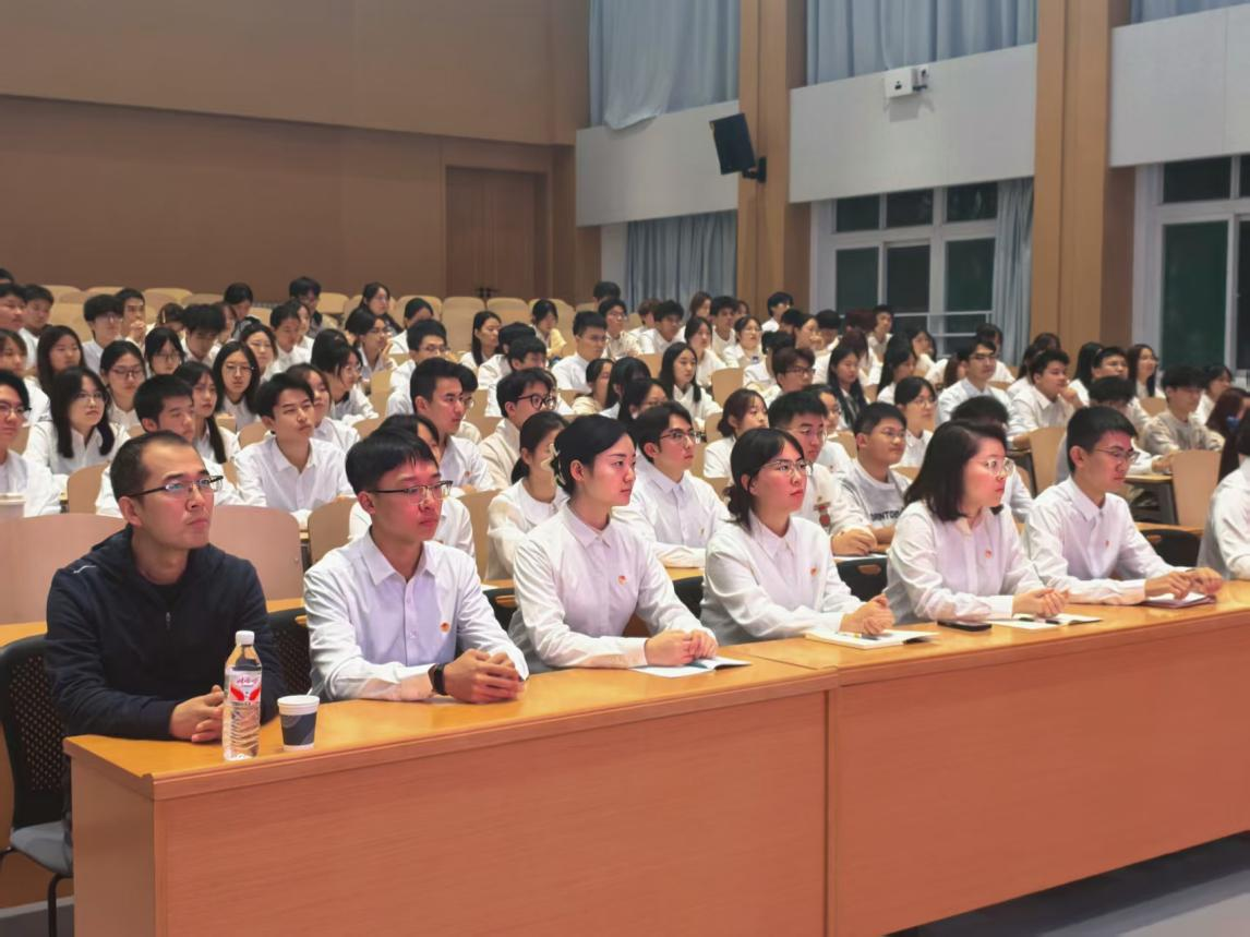 党委书记姬洪波主讲。院团委书记刘雷波、2025级团学骨干及全体团支书参加。